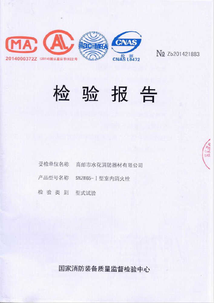 我廠創辦于一九七六年六月,現有職工600人,其中各類技術和管理人員68人。擁有固定資產5000萬元,占地面積35000多平方米,建筑面積25000多平方米。建立了完善的質量體系,取得多種“計量合格確認證書”,并成為江蘇及多省的消防協會會員單位。工廠技術力量雄厚,生產和檢測設備齊全,工藝先進。生產“水花”牌水帶接口: KDK65, KD65,KY65,KN65。消防水槍: QZG3.5/7.5, QZ3.5/7.5,QP8/0.7Z泡沫水槍。室內消火栓: SN65, SNW65-I,SNZ65, SNZW65-I。 消防軟管卷盤JPS0.8-19/25。生產的“郵花”牌,消防有襯里水帶:65-8、10、 13、 16、20、 25型; 80-16、 20、25型。水帶接口: KD50、65; KY50、65;KN65。消防水槍: Q2Z3.5/7.5、 5。 室內消火栓: SN65, SNW65-I, SNZ65, SNZW65-I。 并于二零一五年五月通過公安部消防產品合格評定中心3C換版檢驗,獲得以上產品所有的強制認證證書,準予生產和銷售,產品行銷全國各地,深受廣大用戶好評。